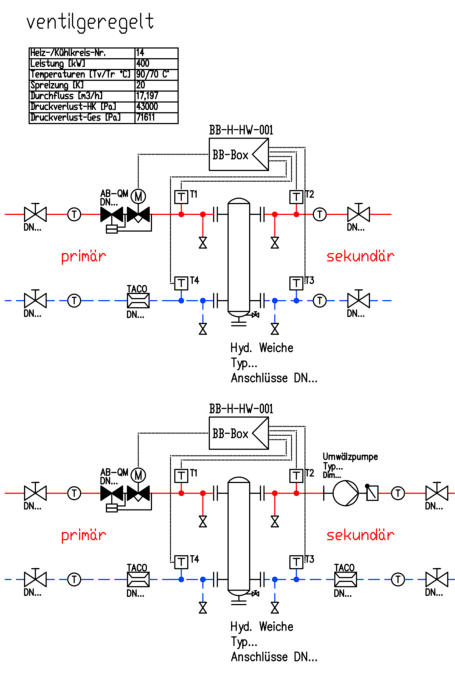 Diese Plug&Play-Regelung regelt die Sekundärsolltemperatur einer hydraulischen